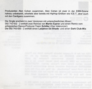 Maxi CD mit Touraufkleber und leicht verändertem Cover gegenüber der Promo CD. Der Schiller Remix ist Track Nr.3 +++ Mit Produktinfo +++