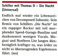 Kostenloses Musik-Szene Magazin, Ausgabe Dezember 2005 Mit einem kurzem Artikel über die Schiller feat. Thomas D. Single "Die Nacht ... Du bist nicht allein"