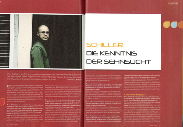 Beat, das Magazin für Recording, Praxis, Tests. Ausgabe März 2008 In dem vierseitigen Interview mit Christopher von Deylen geht es um seine Reise nach Kalkutta, den Auftritt mit Depeche Mode in Athen und natürlich das neue Album "Sehnsucht"