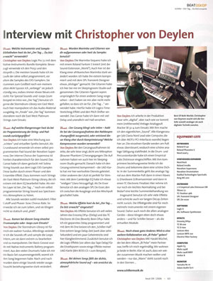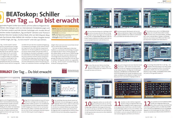 Beat, das Magazin für Musikproduktion, Ausgabe 09 / 2006 In dem vierseitigen Bericht wird Schiller's "Der Tag ... Du bist erwacht" produktionstechnisch beleuchtet, außerdem gibt es ein Interview mit C. von Deylen über seine Arbeitsweise und die von ihm verwendete Hard- und Software.