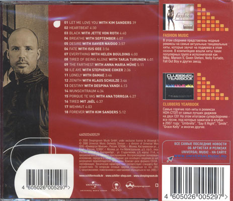 Veröffentlichungsland: Russland Russland Edition des Albums Sehnsucht mit Obi Strip Neu zusammengestellte Trackliste aus beiden CDs der deutschen Sehnsucht Super Deluxe Edition, sowie dem schon auf dem Album "Tag und Nacht" veröffentlichtem Song mit Tarja Turunen "Tired Of Being Alone" (Track 8) Druckfehler auf dem Backcover: Bei Track 1 fehlt die Minutenangabe der Spieldauer Unterschied zur Internationalen Version: Russischer Universal Label Aufdruck auf dem Frontcover und einem russischem Schriftzug auf dem Backcover