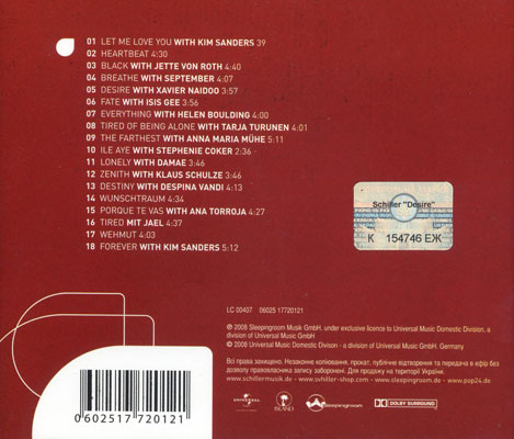 Veröffentlichungsland: Ukraine Ukraine Edition des Albums Sehnsucht mit Hologramm auf dem Backcover Neu zusammengestellte Trackliste aus beiden CDs der deutschen Sehnsucht Super Deluxe Edition, sowie dem schon auf dem Album "Tag und Nacht" veröffentlichtem Song mit Tarja Turunen "Tired Of Being Alone" (Track 8) Druckfehler auf dem Backcover: Bei Track 1 fehlt die Minutenangabe der Spieldauer Unterschied zur Internationalen Edition: Das Foto von Schiller fehlt auf dem Backcover; ein Ukrainischer Schriftzug ist auf dem Backcover vorhanden