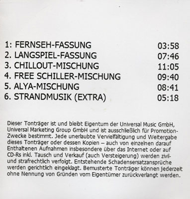 Promo-CD der seltenen 6 Track Maxi mit der endgültigen Trackliste |
