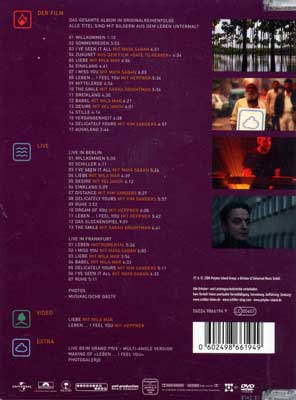 Trackliste: DER FILM: Das gesamte Album in original Reihenfolge. Alle Titel sind mit Bildern aus dem Leben untermalt.