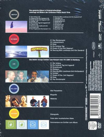 Schiller's erste DVD in der Neuauflage von 2008 als günstige Pur Edition In Dolby Surround