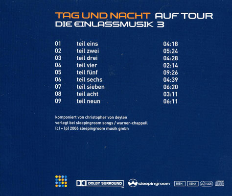 Für die "Tag und Nacht" Tournee (Früjahr '06) hat Christopher wieder eine neue "Einlassmusik" komponiert. Die CD lief vor den Auftritten, quasi als Vorgruppe. In Dolby Sourround