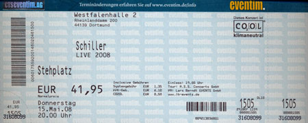 Eintrittskarte für die Schiller "Sehnsucht" Tour 2008 in der Dortmunder Westfalenhalle am 15. Mai 2008
