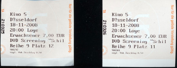 Eintrittskarte zum Schiller DVD Screening "Sehnsucht Live" am 18. November 2008 im UCI Kino in Düsseldorf