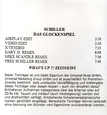 Promo Ausgabe der sechs Track MaxiCD von Schillers Debüt Single