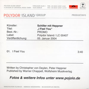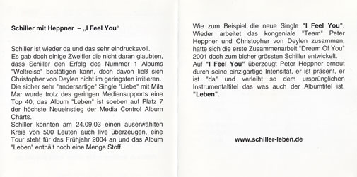 Schiller zweite Auskopplung aus dem Album "Leben". Promo CD 4. Gastsänger ist Peter Heppner. +++ Mit Produktinfo +++