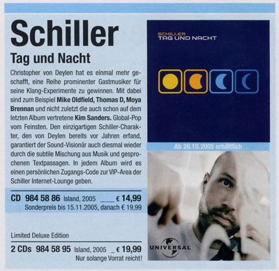 Mit einer Anzeige zu dem Schiller Album "Tag und Nacht"
