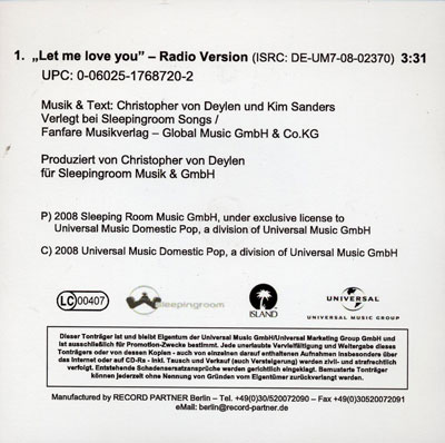 Erste offizielle Single Auskopplung aus dem Album "Sehnsucht", hier die Promo CD