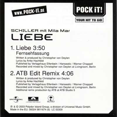 "Liebe" als Mini PockIt CD. Gastsängerin ist Mila Mar.