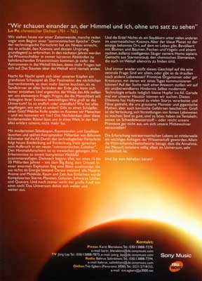 Christopher von Deylen's zweite Zusammenarbeit mit Harald Blüchel. Die Musik zu der "Langen Nacht der Sterne", eine Aktion von über 160 Planetarien im deutschsprachigen Raum, mit dem Ziel, die Menschen für den Nachthimmel zu interessieren. Ein wunderschönes CD-Album in einem Digipack. Mit einem Schiller Track im "Blüchel & von Deylen Remix" (Track 7) +++ Mit Werbeflyer +++