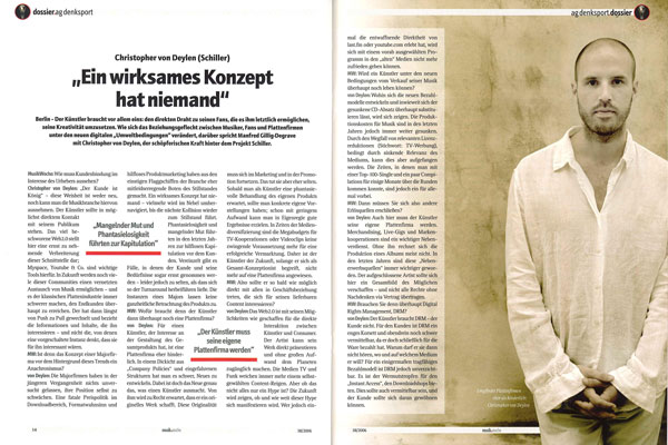 Musik.Woche, das Fachmagazin für die Musikbranche, Nr. 38, Ausgabe 15. September 2006 Zweiseitiges Interview mit Christopher von Deylen zum Thema "zukünftige Musikverwertung"