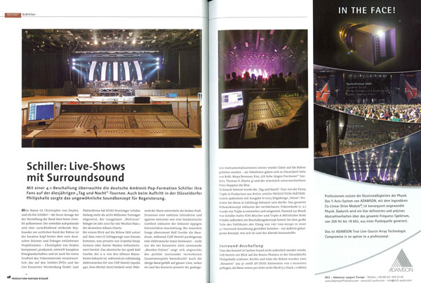 Produktion Partner, das Magazin für Bühnentechnik, Ausgabe 06 / 2006 In dem achtseitigen (!) Bericht geht es um die technischen Aspekte der "Tag und Nacht" Live Tour wie z.B. den Surround Sound und die LED-Licht-Module Hier der Online-Artikel im pdf-Format