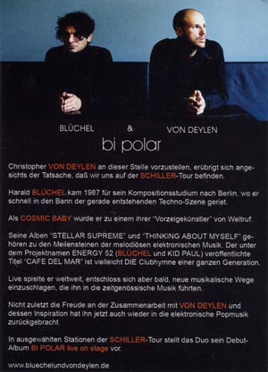 Promotioncard zum ersten gemeinsamen Album von Harald Blüchel und Christopher von Deylen "Bi Polar" Maße: 148 mm x 105 mm (Postkartengröße).