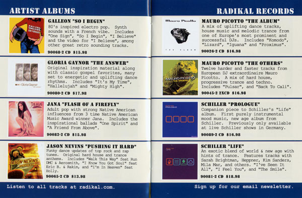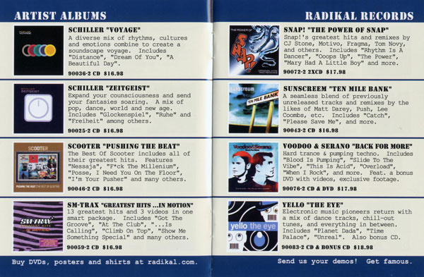 Veröffentlichungsland: USA Katalog und DIN A4 Flyler von Schiller's US Partner Label "Radikal Records" Mit einer Auswahl an Schiller CDs, released in den USA