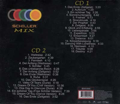 Privater Schiller-Mix von DJ Hit (?) mit Tracks aus den Alben Zeitgeist und Weltreise sowie 2 Tracks von der Gruppe "Dune" (CD2 Track 11 & 13)