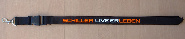 Schlüsselband "Schiller Live ErLeben" Schwarz mit roter / weißer Schrift, Gesamtlänge ca. 570 mm Das Schlüsselband gab es als Überraschung für jeden Besucher des DVD-Screenings (Oktober 2004) im Kino zum Release der Schiller-Live-DVD.