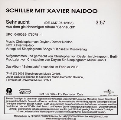 Promo CD vom Track "Sehnsucht" Eine offizielle Maxi CD wurde nie veröffentlicht