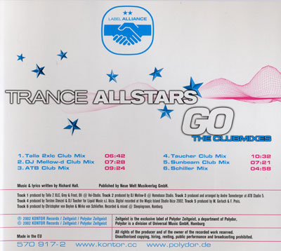 Maxi CD Nr.2 von 2 von "Trance Allstars - Go". Der Schiller Remix ist Track 6