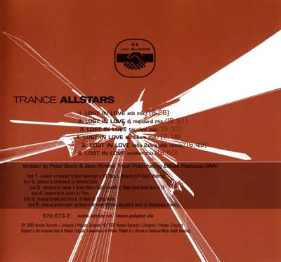 Maxi CD Nr.2 von 2 von "Trance Allstars - Lost In Love". Der Schiller Remix ist Track 6