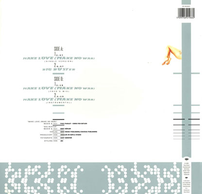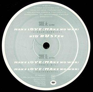 Trackliste: A1: Make Love (Make No War) (Single Version) 4:07 A2: Big Buster 8:57 B1: Make Love (Make No War) (Fred's Mix) 4:18 B2: Make Love (Make No War) (Instrumental) 4:19