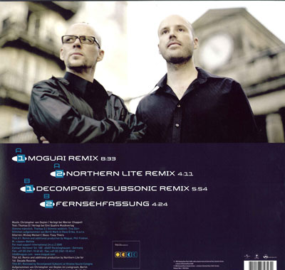 Trackliste: A1: Moguai Remix 8:33 A2: Northern Lite Remix 4:11 B1: Decomposed Subsonic Remix 5:54 B2: Fernsehfassung 4:24 |