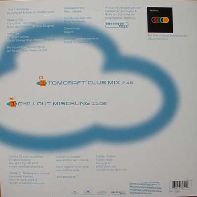 Trackliste: A1: Tomcraft Club Mix 7:45 B1: Chillout Mischung 11:05 |