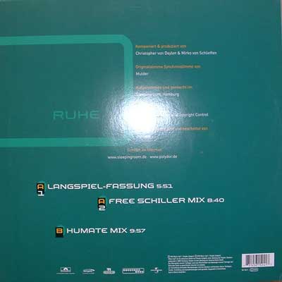 Trackliste: A1: Langspiel-Fassung 5:51 A2: Free Schiller Mix 8:40 B1: Humate Mix 9:57 |