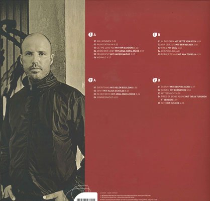 Trackliste Vinyl 1: A1: Willkommen 1:05 A2: Wunschtraum 4:35 A3: Let Me Love You (mit Kim Sanders) 6:33 A4: Denn wer liebt (mit Anna Maria Mühe) 3:59 A5: Sehnsucht (mit Xavier Naidoo) 3:57 A6: Wehmut 4:17 B1: Everything (mit Helen Boulding) 4:00 B2: Zenit (mit Klaus Schulze) 8:23 B3: In der Weite (mit Anna Maria Mühe) 5:14 B4: Sommernacht 4:53 Trackliste Vinyl 2: A1: In The Dark (mit Jette von Roth) 4:59 A2: Vor der Zeit (mit Ben Becker) 3:18 A3: Tired (mit Jael) 4:45 A4: Herzschlag 4:40 A5: Porque Te Vas (mit Ana Torroja) 4:29 B1: Destiny (mit Despina Vandi) 4:17 B2: Heaven (mit Bernstein) 3:53 B3: Mitternacht 4:14 B4: Tired Of Being Alone (mit Tarja Turunen) (7" Version) 4:09 B5: Fate (mit Isis Gee) 4:28 |