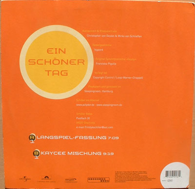 Trackliste: A1: Langspiel-Fassung 7:09 B1: Kaycee Mischung 9:19