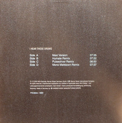Trackliste: A1: Maxi Version 7:35 B1: Humate Remix 7:22 C1: Pulsedriver Remix 6:50 D1: Mono Meltdown Remix 7:37 |