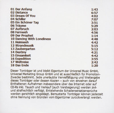 Das zweite Album von Schiller! Promo Version mit der Endgültigen Trackliste