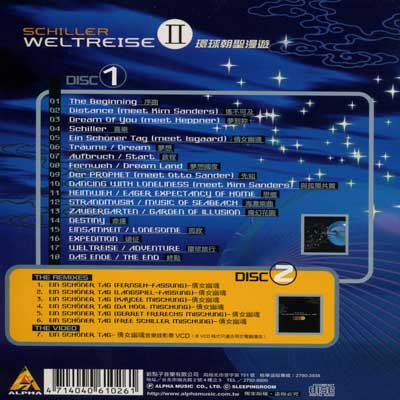 Veröffentlichungsland: Taiwan. 2 CDs in einer wunderschönen Pappbox. CD1 wie das deutsche Album "Weltreise". CD2 (The Remixes & The Video) beinhaltet mehrere Remixe von "Ein schöner Tag" und ein Video. +++ Mit Autogramm +++